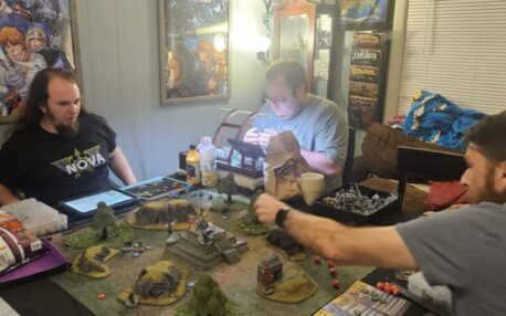 Ben playing a game with Jacob Tury. A few snacks, some Marvel Crisis Protocol, and Jacob Timm (painting) there to make a few comments every now and then…perfection!”